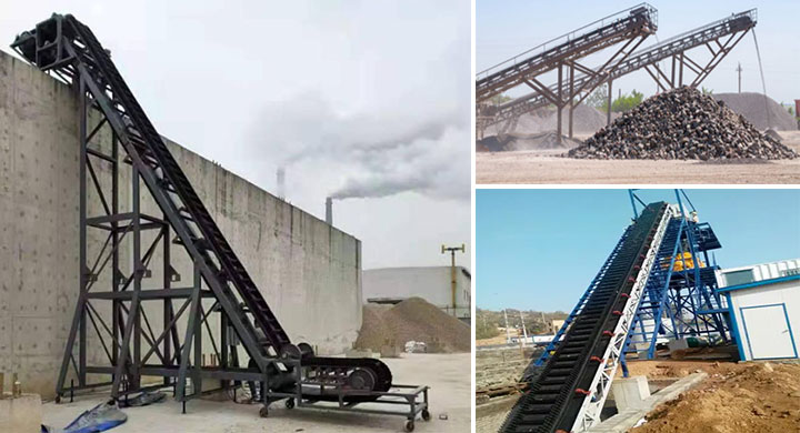 大傾角皮帶輸送機(jī)配波狀擋邊和橫隔板輸送帶,可大傾角至 90° 輸送,適用于多行業(yè)散狀物料,最大物料粒度 400mm,特殊物料需用對(duì)應(yīng)輸送帶。