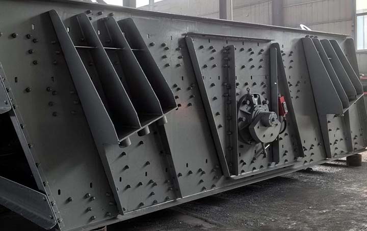 0715型礦用重型振動篩有篩箱、振動電機(jī)、減振系統(tǒng)及底架等組成。篩箱由篩框、篩板、襯板等組成。篩機(jī)側(cè)板采用優(yōu)質(zhì)鋼板制作而成,側(cè)板與橫梁、激振器底座采用高強(qiáng)度螺栓或環(huán)槽鉚釘連接,結(jié)構(gòu)合理,堅固耐用。
